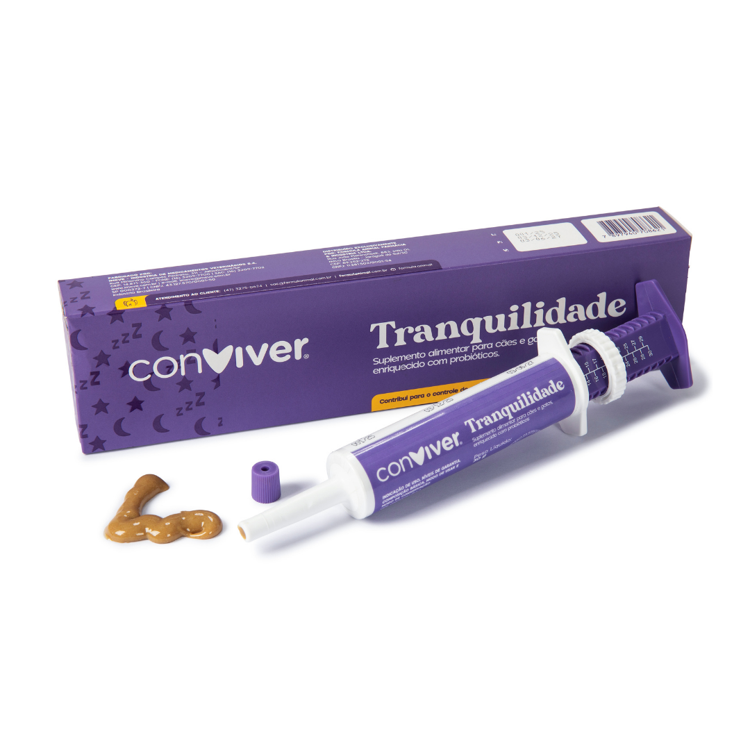 O CONVIVER Tranquilidade é um calmante natural para cães e gatos que auxilia no controle da ansiedade, do medo de fogos, trovões e situações de estresse do dia a dia. Sua fórmula foi desenvolvida para promover equilíbrio emocional e bem-estar sem causar sedação, permitindo que o pet permaneça tranquilo e ativo.